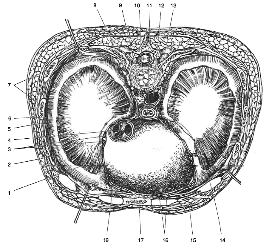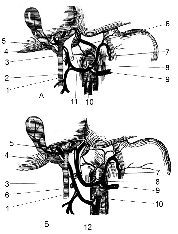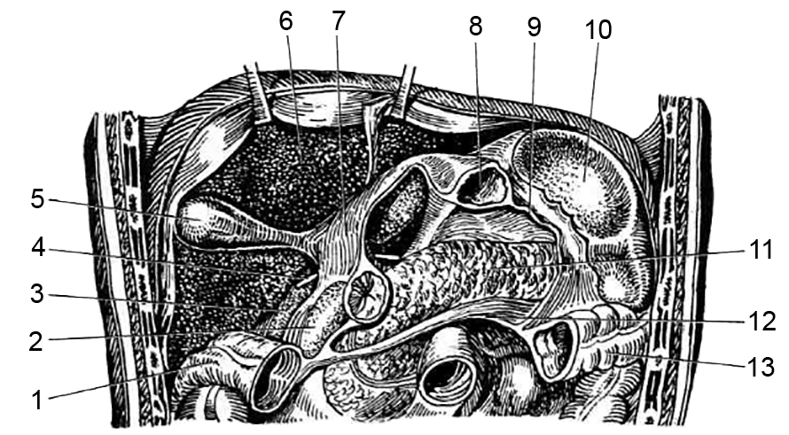 (Из: Буланов Г.А., Овсяников В.Я. Клинические аспекты топографической анатомии органов брюшной полости. — Нижний Новгород, 1992.)