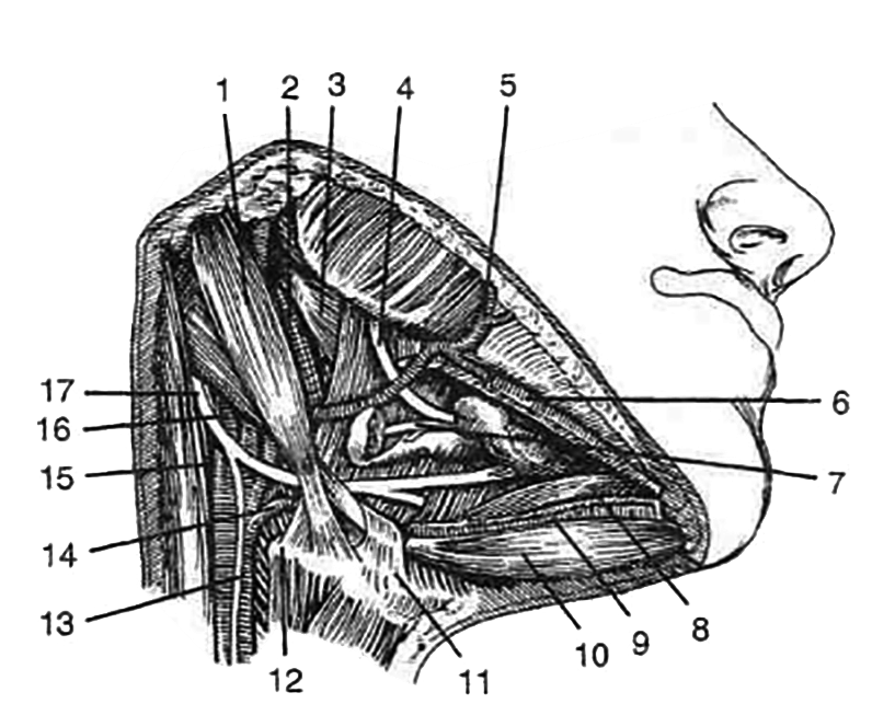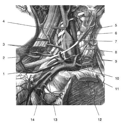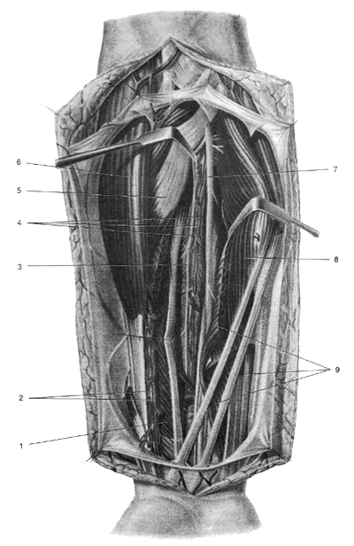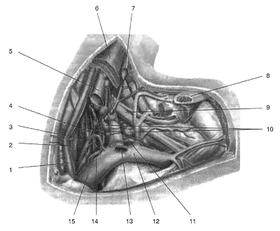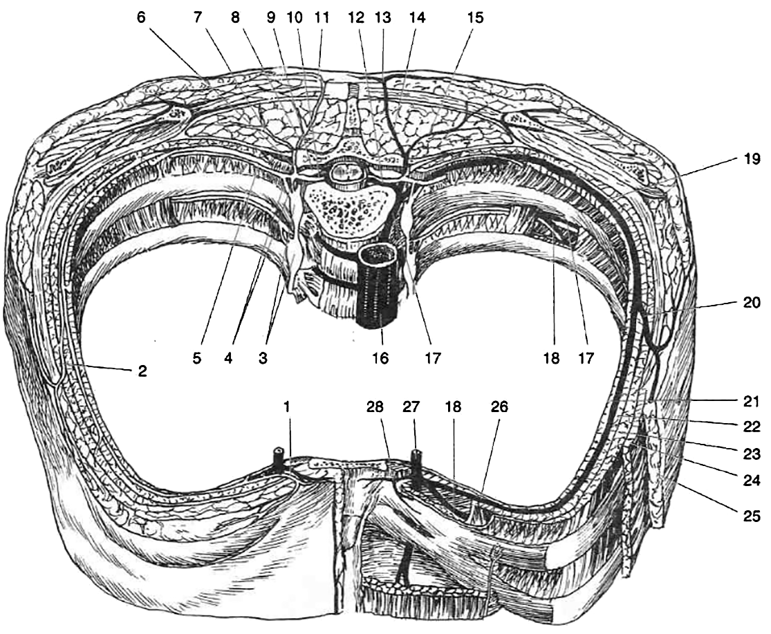 (Из: Золотко Ю.Л. Атлас топографической анатомии человека. - М., 1976; Синельников Р.Д. Атлас анатомии человека. - М., 1972. - Т. I.)