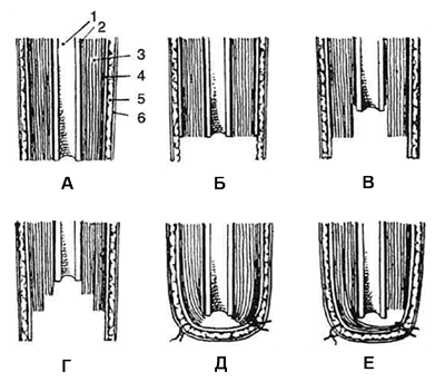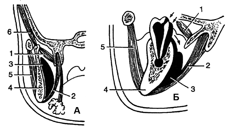 6 — трансуретральный. (Из: Руководство по клинической урологии / Под ред. А.Я. Пытеля. — М., 1970. — Т. 2.)